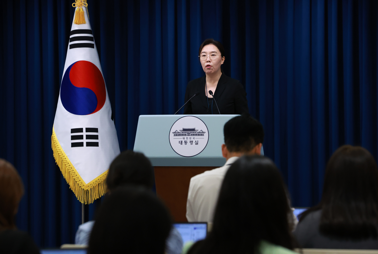 강유정 대통령실 대변인이 24일 서울 용산 대통령실 청사에서 현안 브리핑을 하고 있다. [연합] |