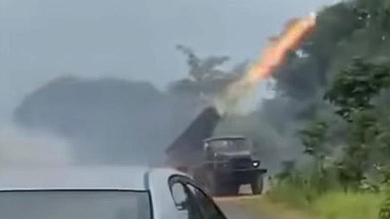 ▲ 지난 24일(현지시간) 캄보디아군이 러시아산 BM-21 다연장로켓포를 태국 쪽을 향해 발사하는 장면