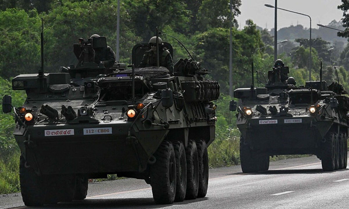 지난 24일(현지시간) 태국-캄보디아 국경 지대에서 교전이 벌어진 가운데 태국군 장갑차들이 이동하고 있다. AFP연합뉴스 |