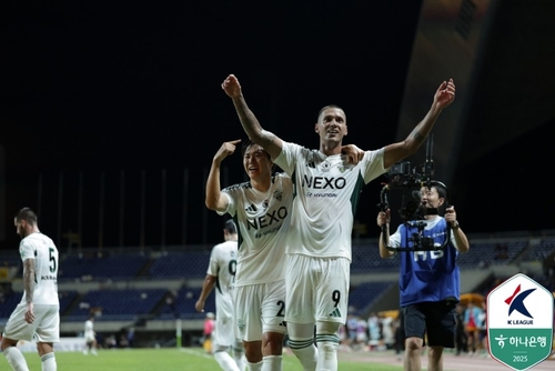 승점 3을 추가한 김천(승점 39)은 승점이 같은 3위 대전하나시티즌에 다득점에서 앞서며 2위에 복귀했다.