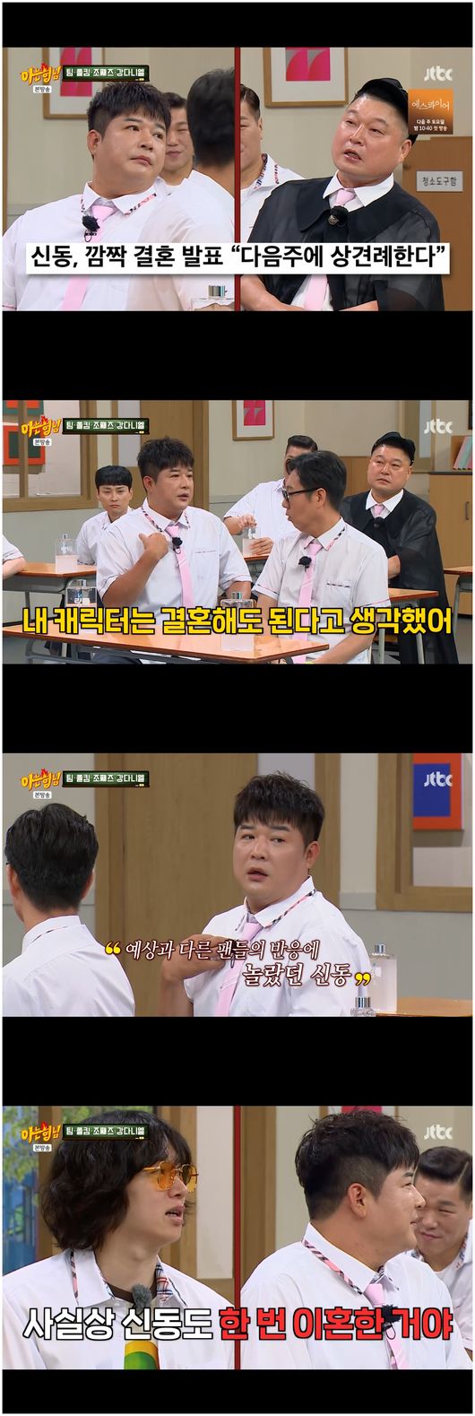 이에 신동은 “내 캐릭터가 결혼을 해도 된다고 생각을 했는데, 팬들이 화를 내는 거 보고 깨달았다”라며 조심스럽게 말문을 열었다. 그러자 김희철은 “사실 신동은 한 번 이혼한 거지”라고 말해 스튜디오를 뒤집어 놓았다./osen_jin0310@osen.co.kr