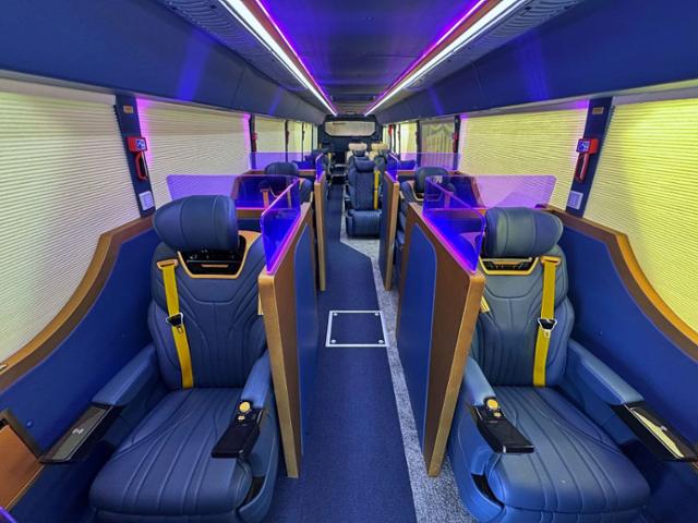 29일 입국하는 FC바르셀로나 선수단은 20개 좌석으로 내부를 완전히 새 단장한 이 버스를 이용하면서 서울·대구 경기 등 모든 일정을 소화한다. 모든 좌석은 안마 기능, 통풍 시트, 무선 충전 시설 등을 갖췄다. 또 앞쪽의 독립 좌석에는 넷플릭스, 유튜브를 시청할 수 있는 24인치 모니터가 달렸다.