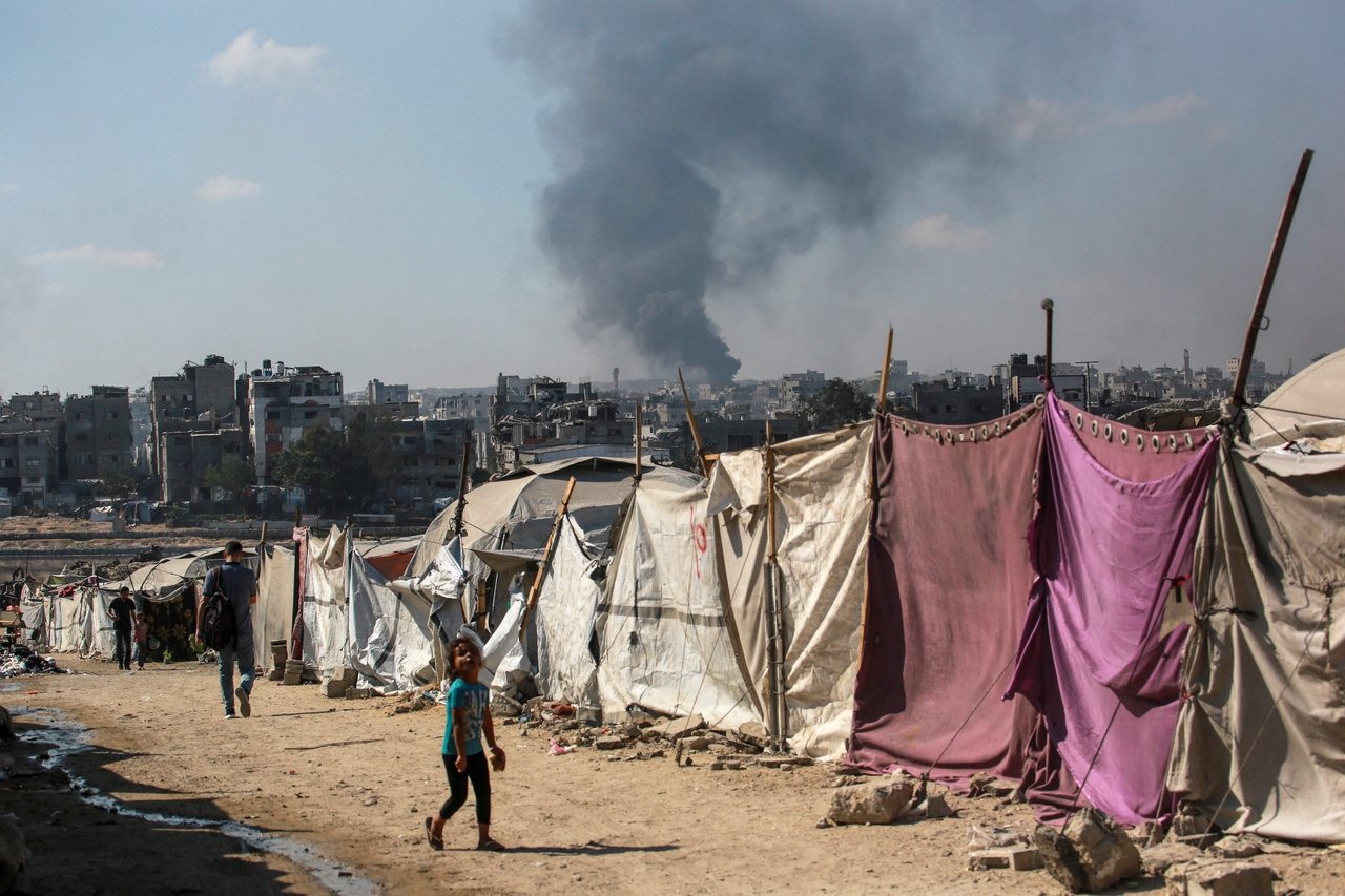 팔레스타인 무장정파 하마스의 지배 영역인 가자지구가 지난 6일(현지시간) 폐허가 된 가운데 거주지에 검은 연기가 피어오르고 있다. [AFP] |