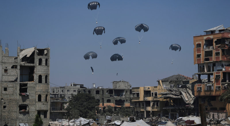 이스라엘이 최근 심각한 식량난 등에 처했다는 평가를 받고 있는 팔레스타인 가자지구에 26일부터 공중 투하 방식의 구호품 공급에 나섰다. 또 27일부터 매일 10시간 동안 가자지구에서의 군사 작전을 중단하겠다고 밝혔다. 이스라엘의 가자지구 봉쇄 장기화로 식량난이 극심해지면서 사상자 수가 늘고, 국제사회의 비난이 커지는 것을 고려한 조치로 풀이된다. 하지만 공중 투하로는 구호품의 충분한 공급이 어렵고, 오히려 구호품에 맞아 사망자와 부상자가 발생할 수 있다는 지적이 나온다.
