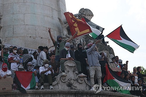 프랑스 파리 레퓌블리크 광장의 팔레스타인 지지 시위대 |