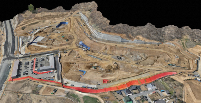 DL이앤씨의 드론 플랫폼에서는 디지털 트윈을 기반으로 공기·공정별 현장 상황을3차원으로 확인할 수 있다. 경사도와 면적, 거리 등 현장을 측정하고 기록한다. 현장 상황을 도면과 비교하며 시공의 정확도를 높이는 것은 물론, 효율적인 현장 관리도 가능하다.