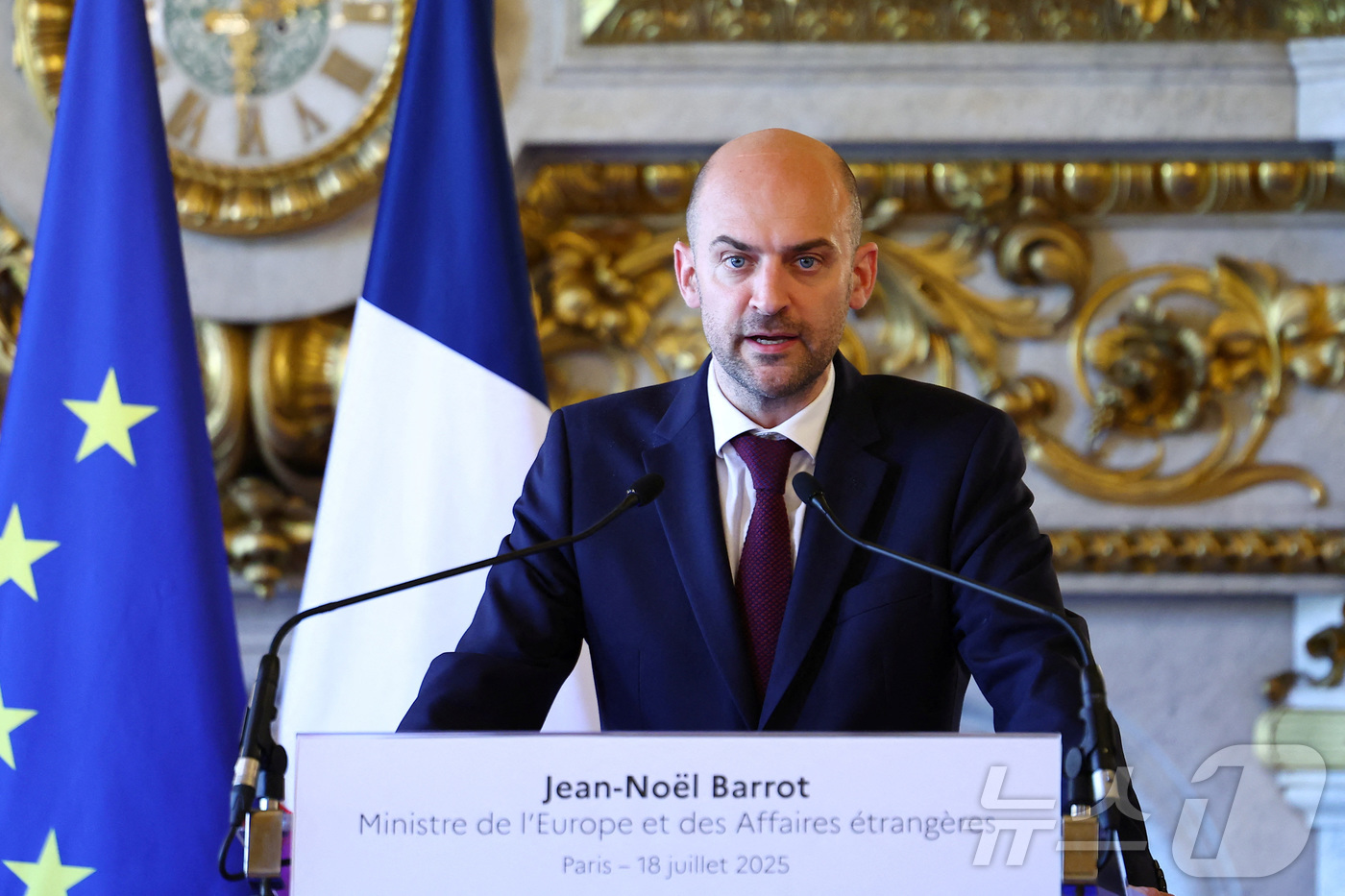 18일(현지시간) 장-노엘 바로 프랑스 외무장관이 파리 외무부에서 열린 요한 바데풀 독일 외무장관과 비공개 회담 직후 공동 기자회견에서 발언하고 있다. 2025.07.18. ⓒ 로이터=뉴스1 ⓒ News1 윤다정 기자 |