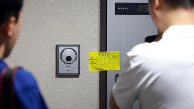 김건희 특검팀(특별검사 민중기)이 서울 노원구에 위치한 이준석 개혁신당의 대표 자택 압수수색에 나선 28일 이 대표의 자택에 압수장소 봉인지가 붙어 있다. 뉴시스 |