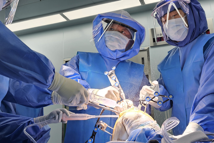 박일규 부천성모병원 정형외과 교수가 로봇 인공관절 수술을 집도하고 있다.(사진=부천성모병원) |