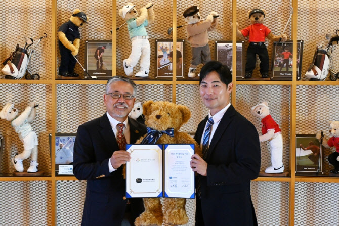 김원섭 KPGA 회장(왼쪽)과 김민 테디밸리 골프앤리조트 부회장이 협약식 뒤 기념촬영하고 있다. (사진=KPGA) |