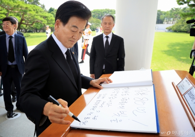 정동영 통일부 장관이 28일 오후 서울 동작구 국립서울현충원을 찾아 현충탑 참배를 마친 뒤 방명록을 작성하고 있다. 2025.7.28/뉴스1 Copyright (C) 뉴스1. All rights reserved. 무단 전재 및 재배포, AI학습 이용 금지. |