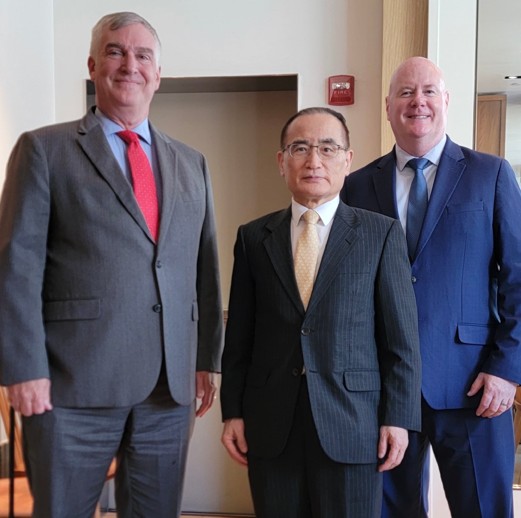 왼쪽부터 프레드 플라이츠 미국우선주의정책연구소(AFPI) 부소장, 위성락 국가안보실장, 스티브 예이츠 헤리티지재단 선임연구원. /플라이츠 제공 |