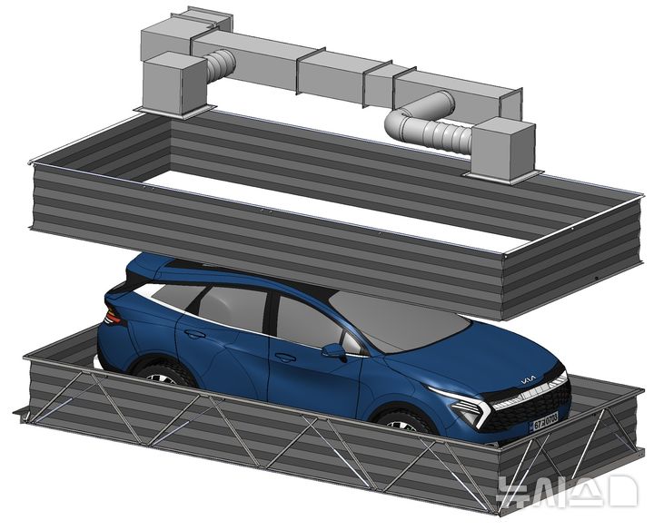[서울=뉴시스] 강세훈 기자 = 지하 주차장에서 발생한 전기차 화재의 피해를 진압할 수 있는 전기차용 화재진압시스템이 출시될 전망이다.