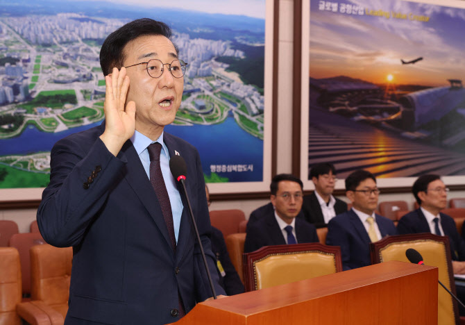 김윤덕 국토교통부 장관 후보자가 29일 오전 서울 여의도 국회 국토교통위원회에서 열린 인사청문회에 출석, 선서를 하고 있다. (사진=이데일리 노진환 기자) |