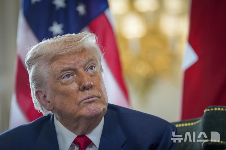 [턴베리=AP/뉴시스]도널드 트럼프 미국 대통령이 28일(현지 시간) 스코틀랜드 턴베리에 있는 자신의 골프 클럽에서 키어 스타머 영국총리와 회담하기 앞서 취재진 질문을 듣고 있다. 2025.07.28. |