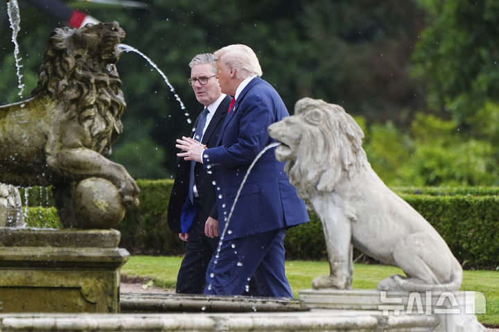 [애버딘셔=AP/뉴시스] 도널드 트럼프 미국 대통령(오른쪽)과 키어 스타머 영국 총리가 28일(현지 시간) 스코틀랜드 애버딘셔의 트럼프 인터내셔널 골프장에서 함께 걷고 있다. 2025.07.29. |