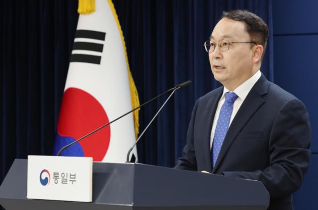 구병삼 통일부 대변인이 28일 서울 종로구 정부서울청사 브리핑실에서 북한 김여정 노동당 부부장 담화 관련 통일부 입장을 발표하고 있다. 뉴스1 |