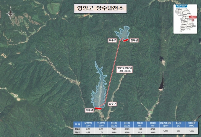 영양 양수발전소는 국내 최대 규모인 1GW로 2024년부터 2035년까지 약 2조6000억원을 사업주관사인 한수원에서 전액 부담해 영양군 일월면 용화리 일원에 상·하부 저수지 및 발전설비, 이주단지를 조성한다.