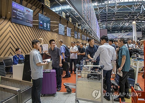모스크바-평양 직항 여객기 탑승 수속하는 승객들 |