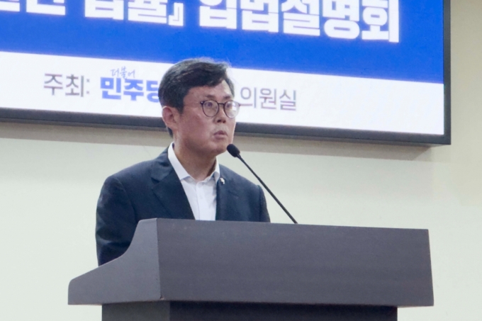 안도걸 더불어민주당 의원이 30일 국회 의원회관에서 '가치안정형 디지털자산의 발행 및 유통에 관한 법률' 입법설명회 겸 기자간담회에서 법안 추진방향에 대해 발표하고 있다./사진=성시호 |