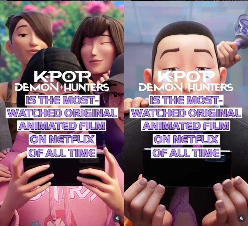 30일 넷플릭스는 글로벌 소셜미디어를 통해 '케이팝 데몬 헌터스'는 역대 오리지널 애니메이션 영화 가운데 시청 1위를 기록했다는 영상을 게재했다.