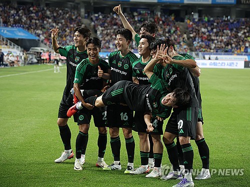 전진우(전북)와 이동경의 연속 슈팅 직후 전반 36분 역습 상황에서 왼쪽 페널티 지역 김진규(전북)의 오른발 슈팅이 먼저 골망을 가르자 2만7천422명 팬의 환호가 수원월드컵경기장을 가득 메웠다.