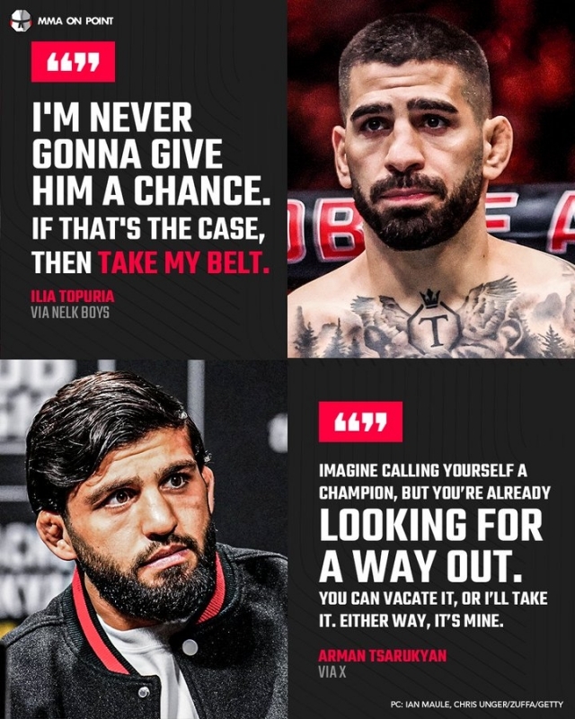 톰 아스피날을 피해 도망 다녔던 존 존스처럼, 일리아 토푸리아 역시 아르만 사루키안의 도전을 외면하고 있다. 사진=MMA 온 포인트 SNS |