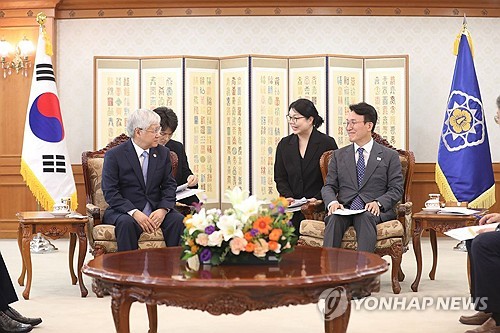 (서울=연합뉴스) 이상현 기자 = 김민석 국무총리는 31일 정부서울청사에서 한국국제교류재단 초청으로 방한한 도 반 찌엔 베트남 조국전선위원장을 접견하고 아시아태평양경제협력체(APEC) 정상회의 및 지역정세, 경제협력에 대해 의견을 나눴다.