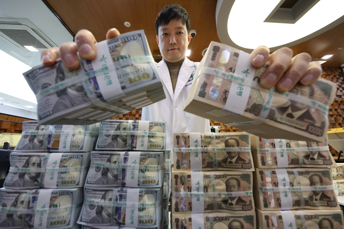 지난 3월17일 서울 중구 하나은행 위·변조 대응센터에 달러, 엔화가 놓여있는 모습. 연합뉴스 |