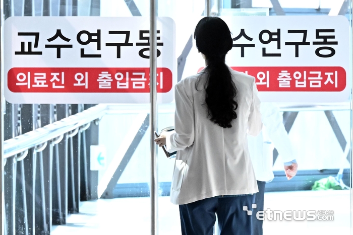 서울 시내의 한 대학병원에서 의료진이 이동하고 있다. 이동근기자 foto@etnews.com |