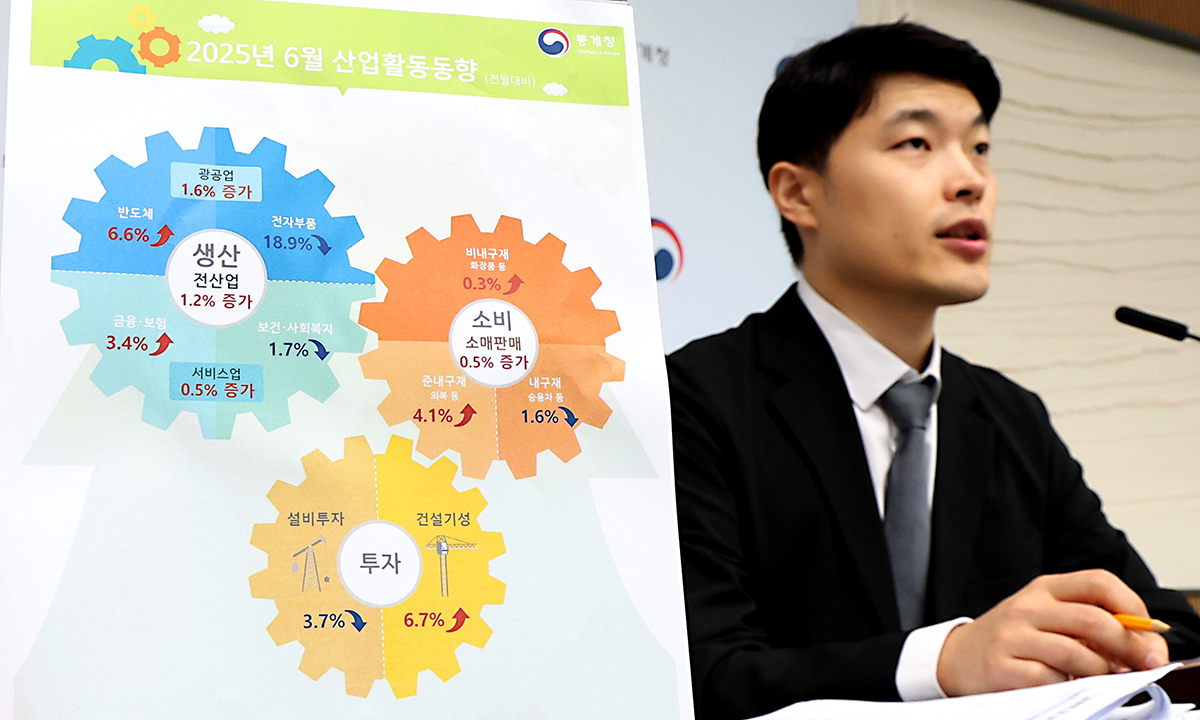 최창윤 통계청 서비스업동향과장이 31일 세종시 정부세종청사에서 2025년 6월 산업활동 동향을 발표하고 있다. 뉴스1 |