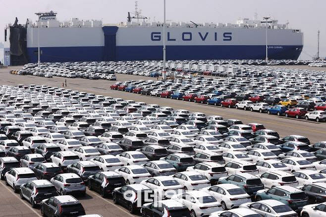 2023년 4월 7일 국내 최대 자동차 수출 항만인 ‘경기도 평택항 동부두’ 내에 마련된 기아 전용 부두 야적장에 선적을 기다리는 차량 수천대가 세워져 있다. [사진=이데일리 이영훈 기자] |