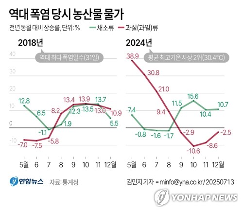 [그래픽] 역대 폭염 당시 농산물 물가 |