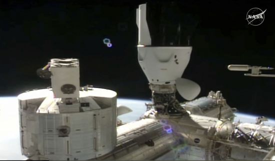 ISS에 도킹한 스페이스X 우주캡슐. 연합뉴스 |