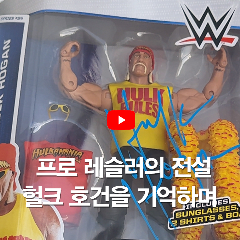 # 이 피규어는 WWE 엘리트 컬렉션 중 하나로, 헐크 호건만의 상징적인 스타일과 포즈가 그대로 담겨 있습니다. 특히 그가 직접 운영하던 숍에서 구매해 현장에서 친필 사인을 받은 더욱 특별한 아이템이죠. 대중에게 꿈과 즐거움을 준 전설을, 이렇게 추모합니다. 잘가요, 헐크.