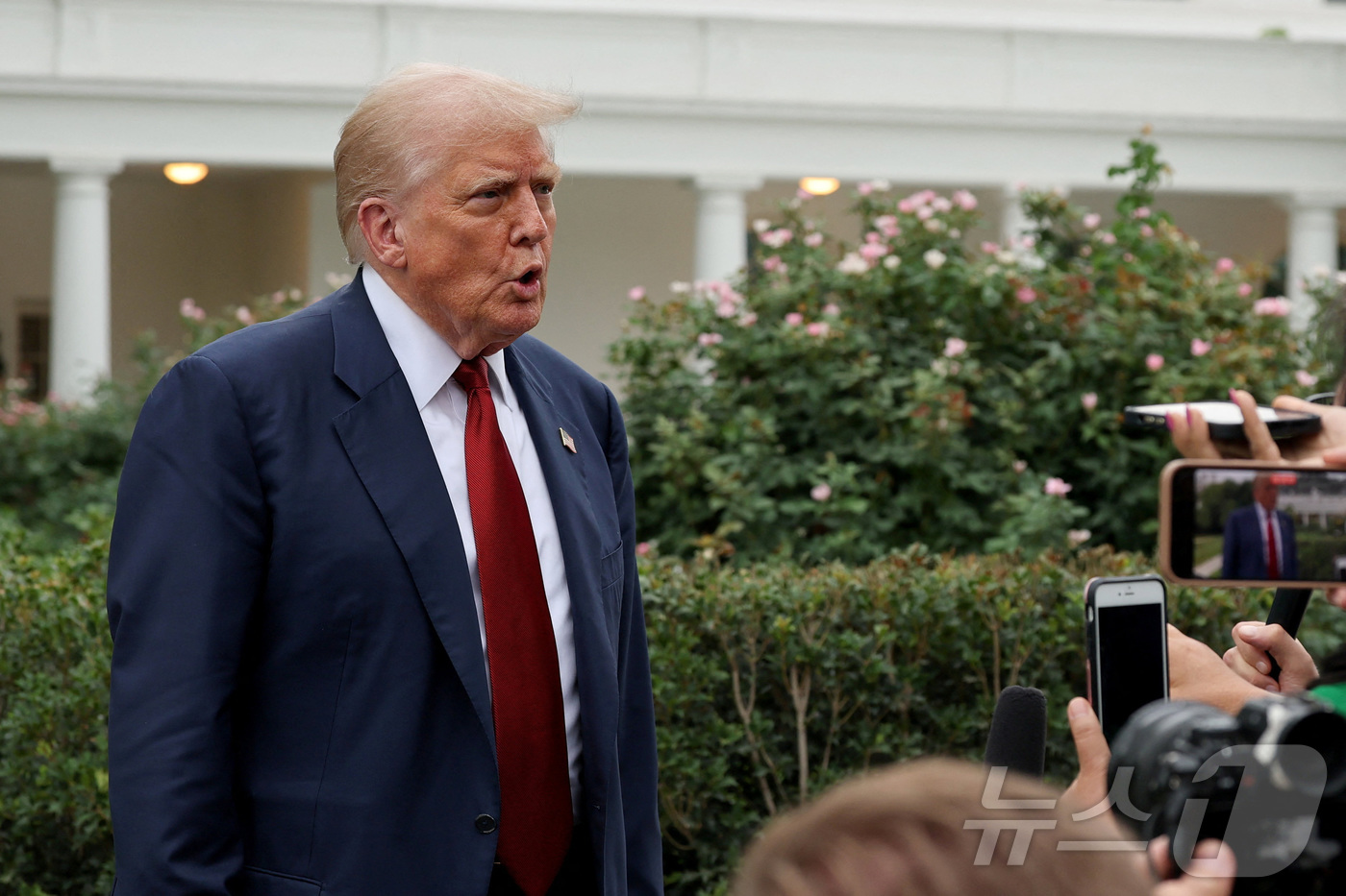 도널드 트럼프 미국 대통령이 1일(현지시간) 미국 워싱턴DC 백악관에서 뉴저지로 출발하기 위해 '마린 원'(미 대통령 전용헬기)에 탑승하기 전 기자들과 만나 질문에 답하고 있다. 2025.08.01. ⓒ 로이터=뉴스1 ⓒ News1 류정민 특파원 |