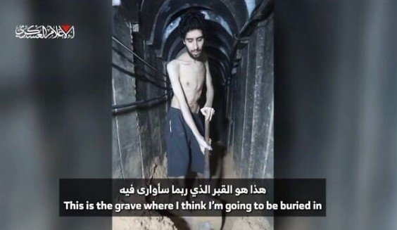 하마스에 의해 억류된 이스라엘인 인질 에비아타르 다비드가 가자지구의 한 터널 안에서 자신의 무덤일지도 모른다며 땅을 파는 장면이 하마스의 선전 영상에 담겼다. 이 영상은 그의 가족의 승인 하에 언론에 공개됐다. 이스라엘인 실종자 가족 포럼 |