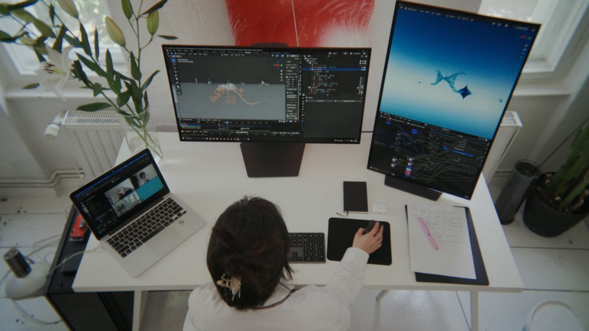 화가가 사다리를 놓고 큰 캔버스와 씨름하거나, 조각가가 땀 흘리며 돌을 깎는 모습에 비교하면, 책상과 모니터, 컴퓨터가 놓여 있는 미디어 작가들의 작업실은 건조하기 짝이 없다. 그렇지만 노동 강도는 전통 매체 작업보다 덜하지 않다. 추수 작가는 “컴퓨터 앞에 앉아 계속 작업을 하다 보니 어깨 손목부터 골반까지 무리가 가서 차에 앉아있는 것도 힘들거나 치아가 두 개 빠진 적도 있다”고 했다.