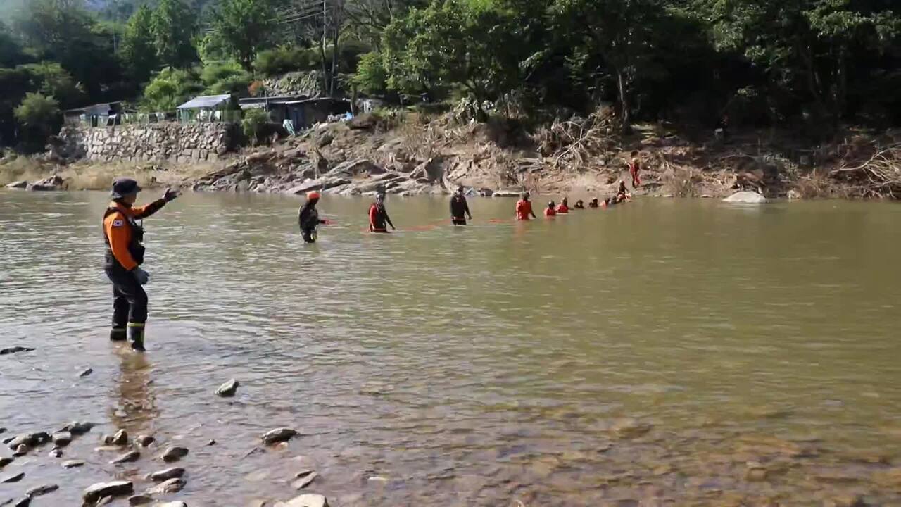 구조당국이 지난달 27일 경기 가평군의 집중호우로 실종된 이들을 찾기 위해 수색을 벌이고 있다. 사진 경기북부소방재난본부 |