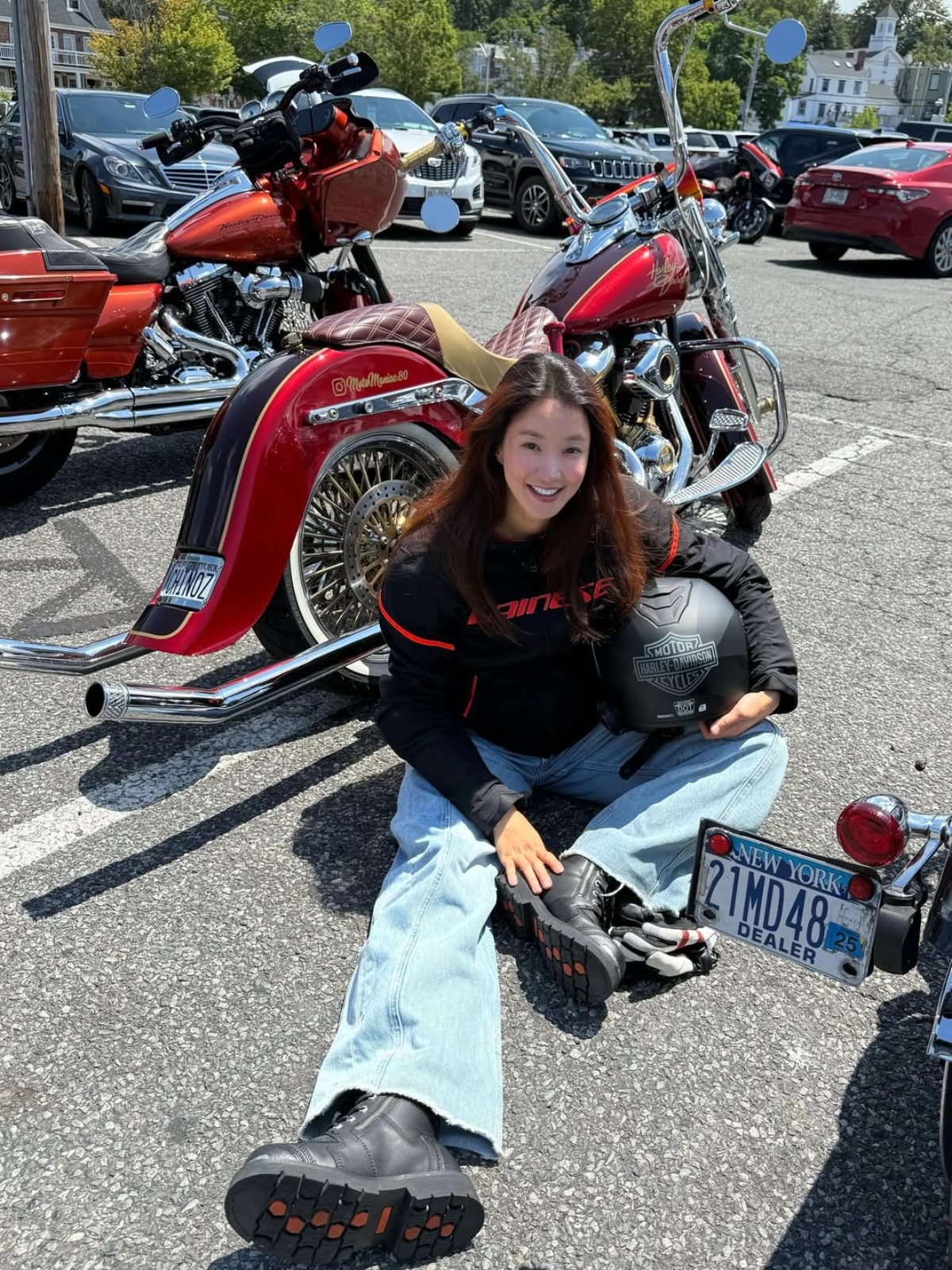 공개된 사진 속 이시영은 뉴욕 번호판이 달린 대형 바이크 옆에 앉아 환하게 웃고 있다. 헬멧과 글러브, 바이크 부츠까지 완벽하게 장착한 채 장거리 라이딩을 마친 후의 여유로운 모습이 시선을 사로잡는다. 자연스러운 생머리와 건강미 넘치는 표정은 이시영 특유의 당당함을 더욱 부각시켰다.