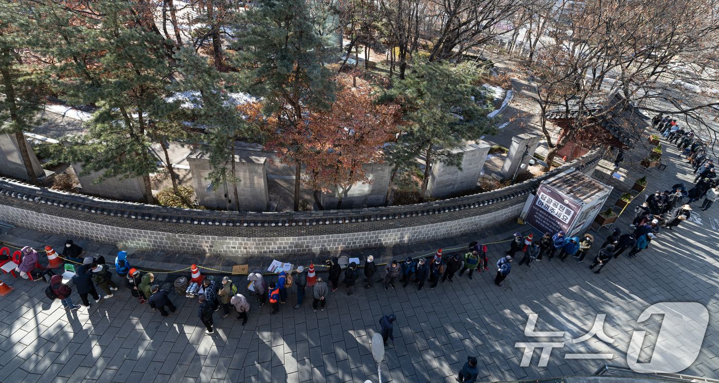 22일 오전 서울 종로구 탑골공원 원각사 노인 무료급식소를 찾은 어르신들이 식사를 위해 줄 서 있다. (사진은 기사와 관련 없음). 2024.12.22/뉴스1 ⓒ News1 이승배 기자 |