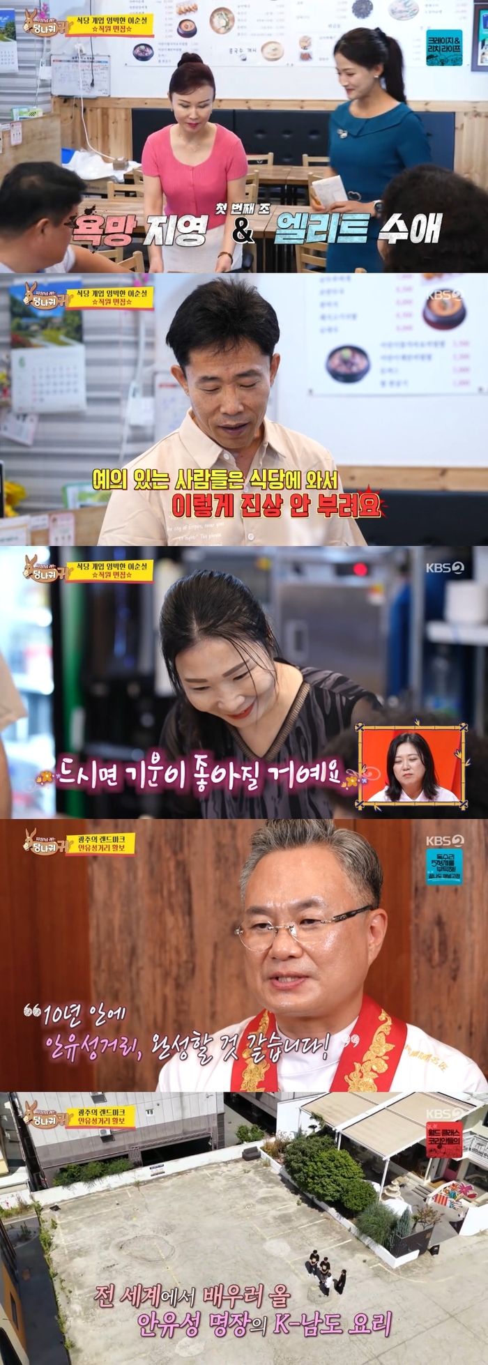 3일 오후 방송된 KBS2 예능 프로그램 ‘사장님 귀는 당나귀 귀’(이하 ‘사당귀’)에는 이순실, 안유성, 엄지인이 차례대로 보스의 일상을 공개했다.