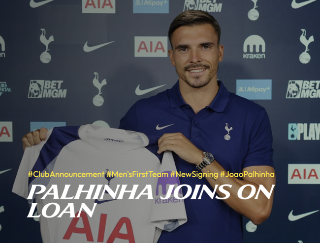 토트넘은 4일(이하 한국시간) "포르투갈 국가대표 수비형 미드필더 주앙 팔리냐를 FC 바이에른 뮌헨으로부터 임대 영입했다. 2025-2026시즌 종료까지 임대이며, 내년 여름 완전 영입 옵션이 포함돼 있다"라고 공식 발표했다.