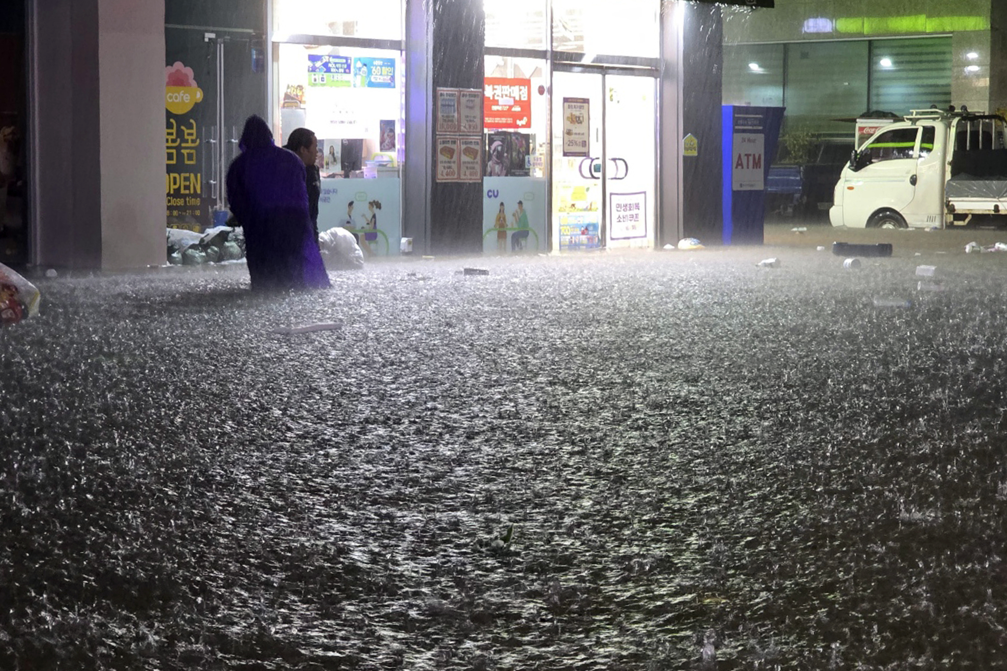 무안군을 중심으로 광주·전남 곳곳에 극한호우가 쏟아진 3일 오후 광주 북구 운암동 거리가 침수됐다. 연합뉴스 |