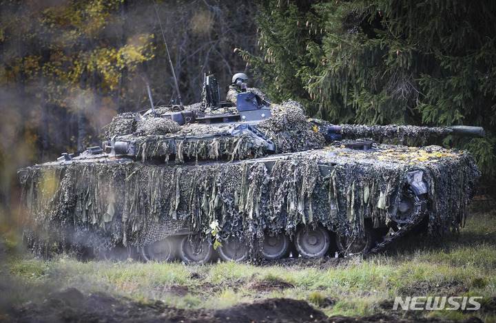 [타파=AP/뉴시스] 에스토니아 타파 육군기지 훈련장에서 전차대대 병사들이 나토 연합훈련에 참여하고 있다. 자료사진. 2025.08.03 |