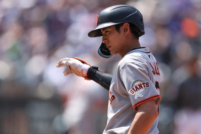 샌프란시스코 이정후가 4일 미국 뉴욕 시티필드에서 열린 뉴욕 메츠와 원정 경기에서 4회 안타를 친 뒤 세리머니를 하고 있다. 뉴욕=로이터 연합뉴스 |