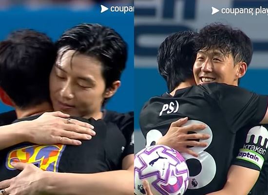 짧은 소감 이후, 박서준은 손흥민에게 땅볼 패스를 하며 시축을 마무리했다. 박서준과 손흥민은 이후 서로에게 다가가 진한 포옹을 하며 남다른 우정을 보여줬다.