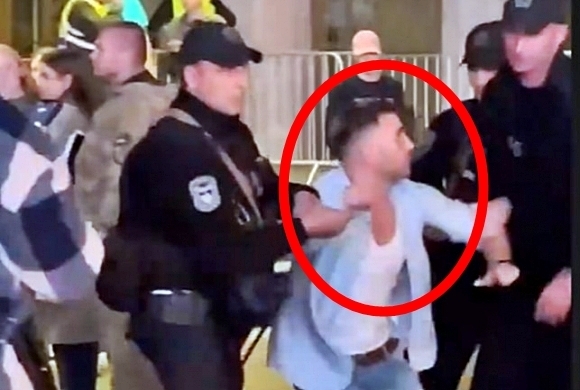 2024년 10월 우크라이나 수도 키이우의 한 콘서트장 밖에서 한 남성이 국가경찰에 의해 강제로 징집되어가는 모습. 라디오자유유럽 자료. |