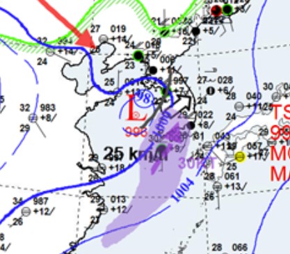 전날(3일) 오후 9시 기준 분석 일기도 |