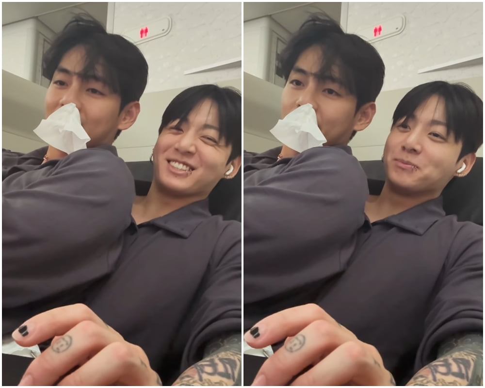 공개된 사진 속 뷔는 방탄소년단 지민, 정국과 일상을 나누는 모습이 담겼다. 특히 뷔는 코에 휴지를 꽂고 비행기 안에서 정국의 무릎에 앉아 이야기를 나누는 모습을 보여 팬들에게 웃음을 줬다. 이외에도 뷔는 헬스장에서 운동하는 사진을 다수 게재하며 탄탄한 바디라인을 자랑했다.